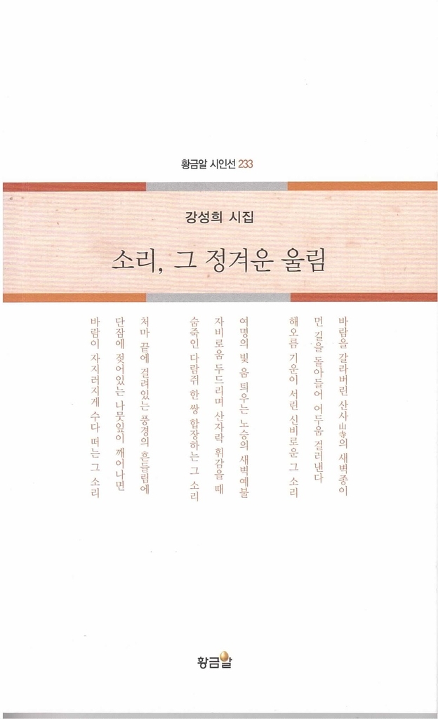 전남 진도경찰서장을 역임한 강성희 시인의 세 번째 시집 '소리, 그 정겨운 울림'이 21일 출간됐다.