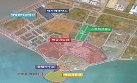 이 밖에 총 560객실 규모의 숙박시설 2개와 280억원이 들어가는 해양생태과학관, 높이 80m의 대관람차, 컨벤션, 마리나 항만 시설 등도 추진되고 있다.