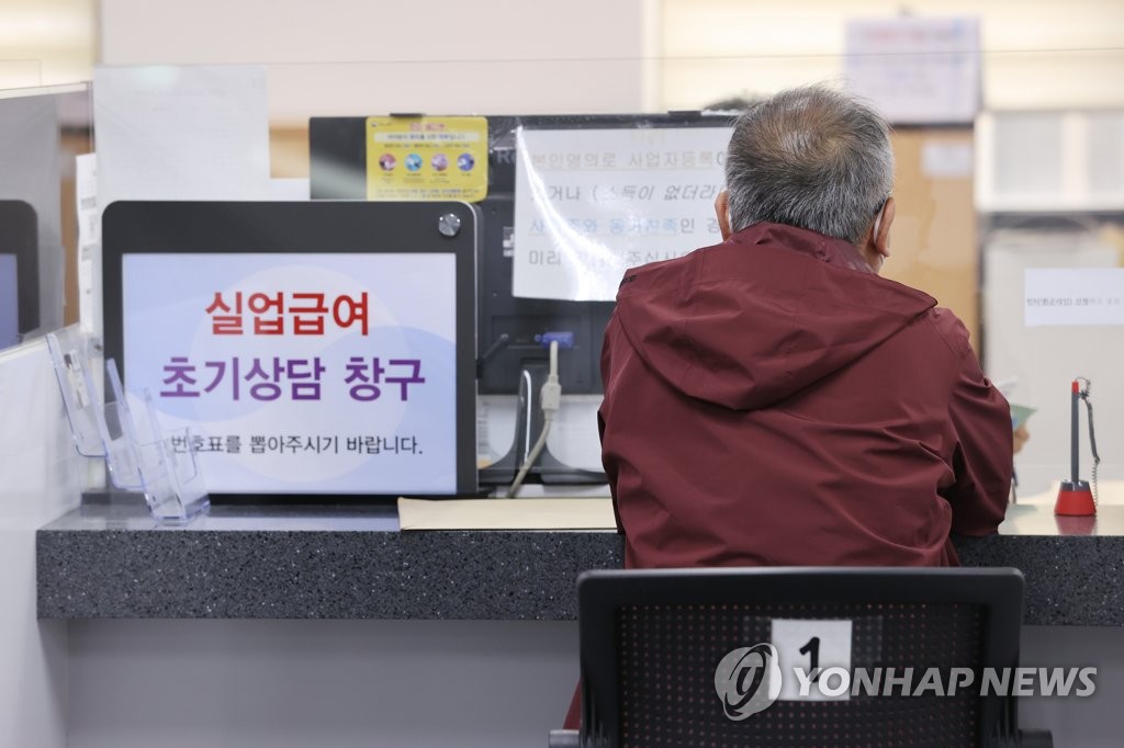 | ▲ This March 24, 2021, photo shows a man talking to a counselor to receive state unemployment benefits at a job center in western Seoul. (Yonhap) |
