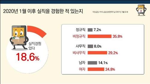 In a survey on 1,000 salaried workers aged 19 or above conducted from March 17-23 by pollster Embrain Public, 18.6 percent said they experienced unemployment since COVID-19 broke out here in January of last year.