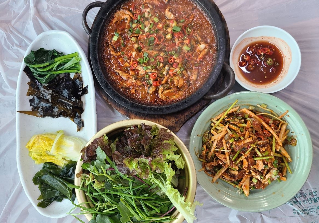 넓은 뚝배기에 담긴 멸치를 턱턱 쌓아 올린 쌈 채소 위에 올려 한입에 넣자 연한 살이 입 안에서 녹아내린다.
