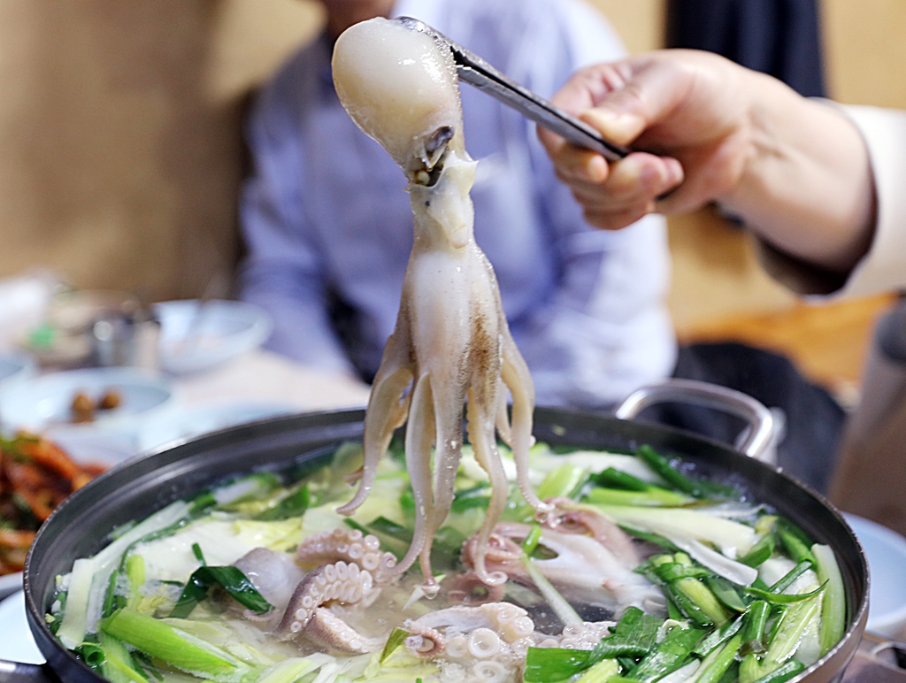 주꾸미를 건져 먹은 뒤 펄펄 끓인 국물에 넣은 칼국수나 수제비, 라면 맛도 빼놓을 수 없다.