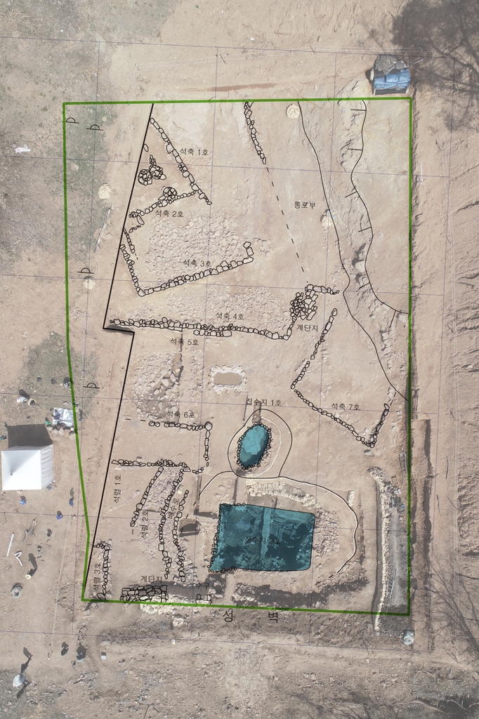 아울러 이번 발굴조사에서는 석축 7기, 추정 집수지 2기, 수구(水口) 등의 유구가 발견됐다. 석축은 조사지역 북쪽 경사면에 조성됐으며, 일부 유구가 중복돼 있어 석축 사이에 축조 순서 또는 시기 차이가 있을 것으로 추정됐다. 집수지는 남반부 평탄면에 조성됐는데, 추정 집수지 1호는 돌, 2호는 목재를 사용해 조성됐다.
