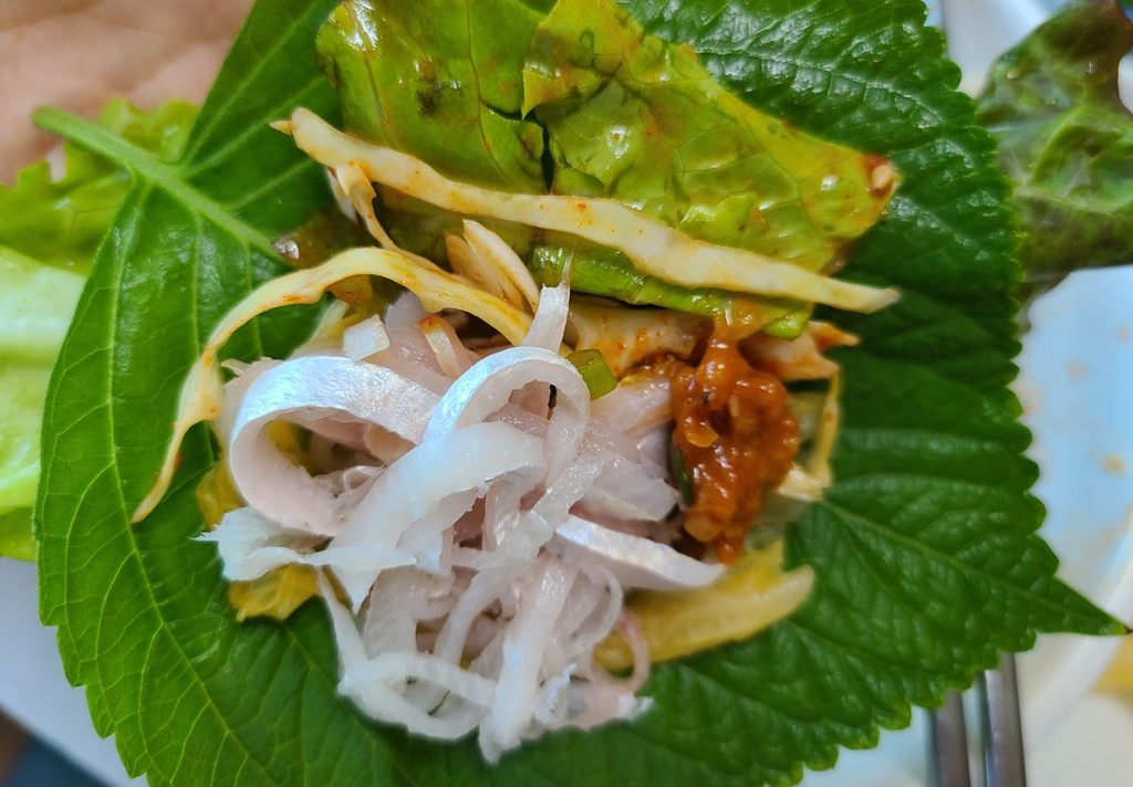 또 양배추, 상추 등 여러 야채를 한데 모아 회에 곁들이는 겉절이 덕에 아삭함과 고소한 풍미가 더해졌다.