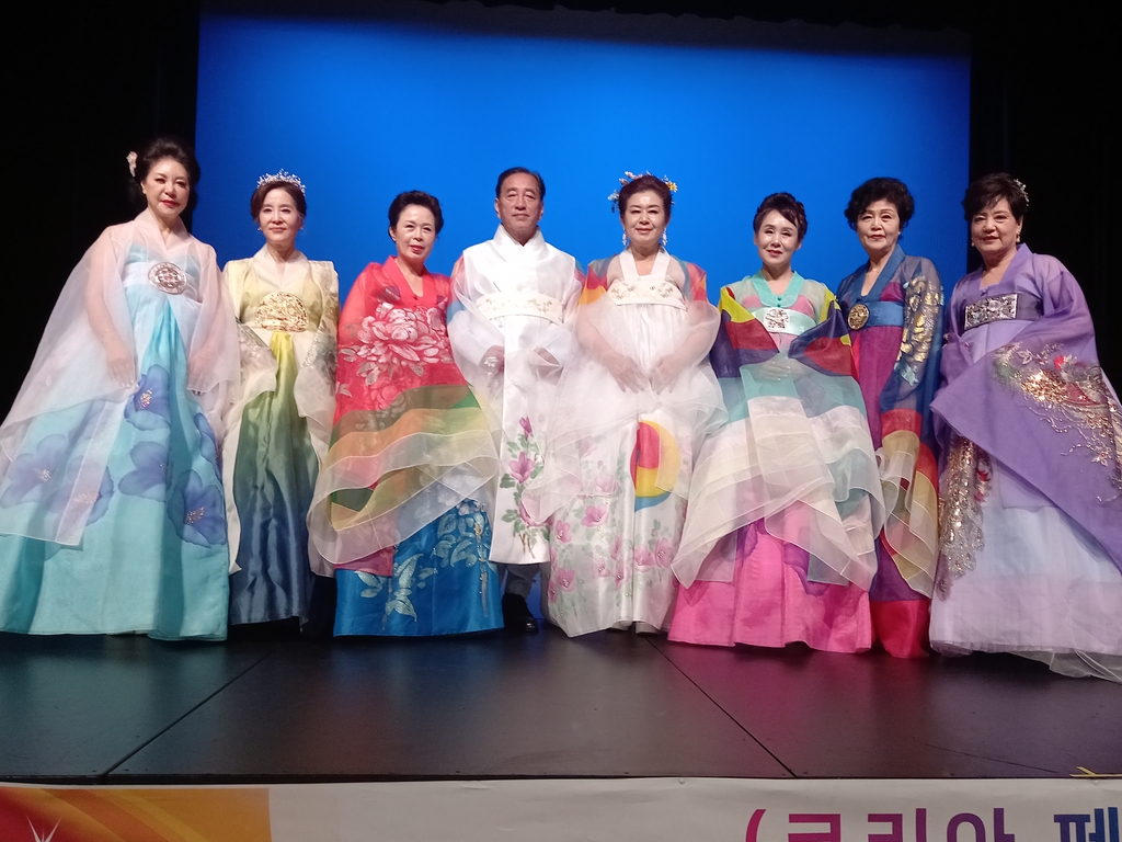 | ▲ 시니어 모델들, 미국 앨라배마주 K팝 콘서트에서 한복 패션쇼 [세계여성문화예술진흥회 사진 제공. 재판매·DB 금지] |