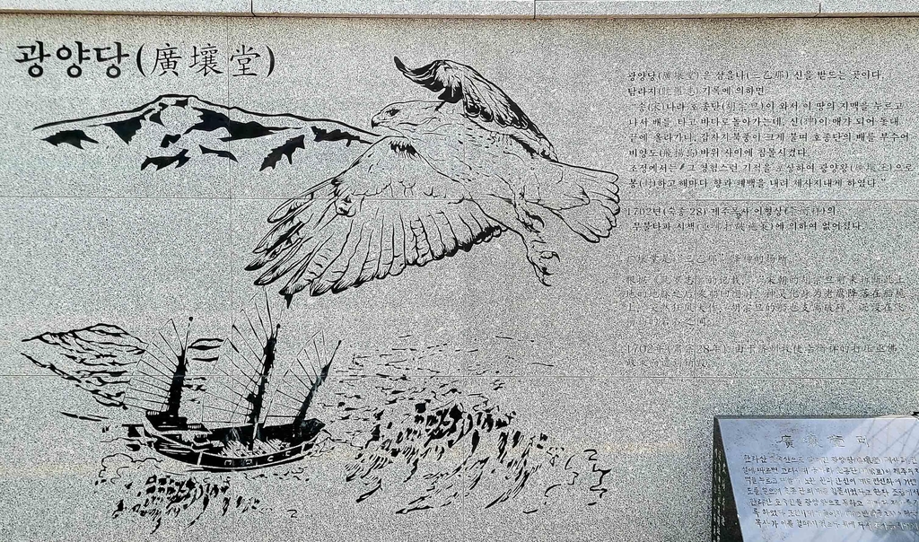 제주의 주요 명혈을 거의 끊은 호종단이 배를 타고 중국으로 돌아가는데, 분노한 광양당신(廣壤堂神)이 매로 변해 폭풍을 일으켜 배를 침몰시키고 호종단을 수장시켰다고 한다.