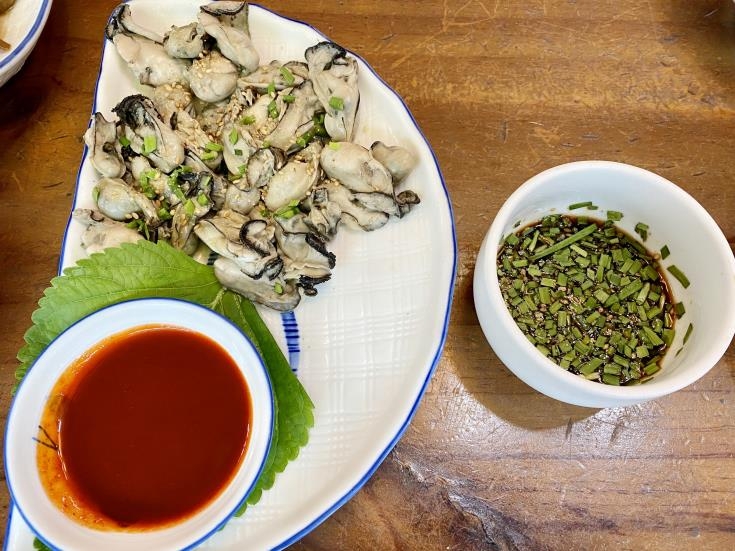 대표 굴요리로 껍질을 까지 않은 굴을 구워 먹는 굴구이가 빠질 수 없다.