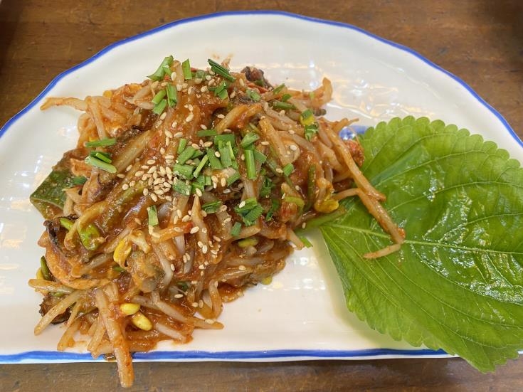 초고추장 양념에 껍질을 깐 알굴을 익히거나 생으로 넣어 무, 양파 등 갖은 채소와 무치는 굴 무침 역시 자꾸 젓가락이 간다.
