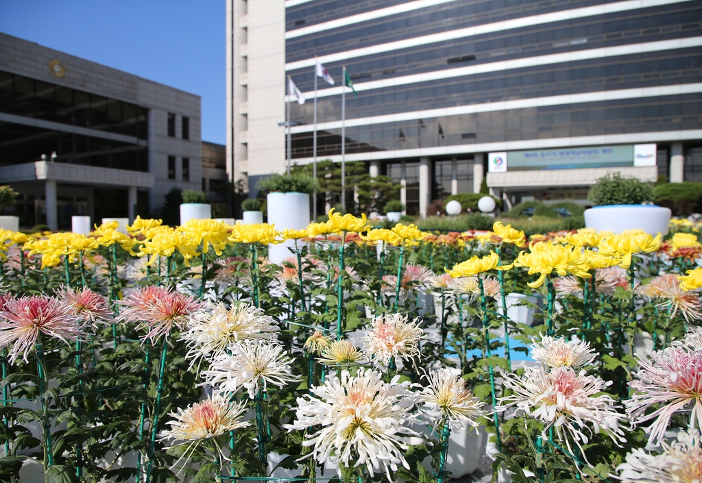 [픽! 충주] '가을' 그윽한 충주시청사…국화 1천400점 전시