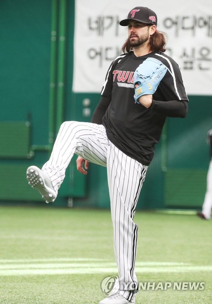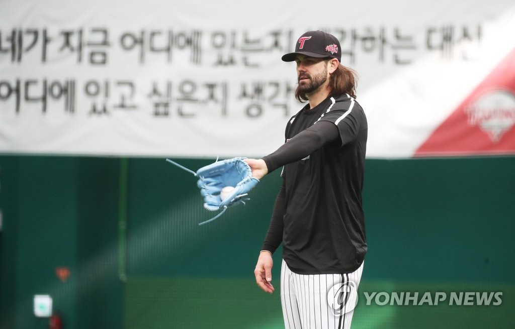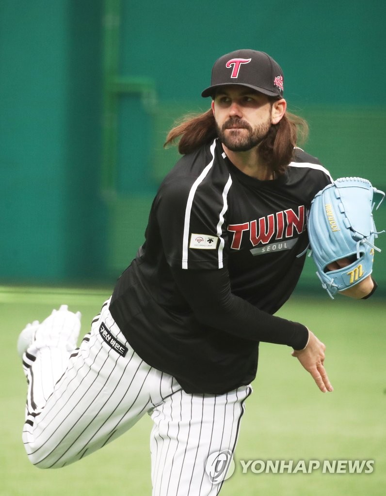 ICHEON, South Korea, Feb. 14 (Yonhap) -- American pitcher Casey Kelly signed with the South Korean club LG Twins in November 2018, after bouncing between five major league organizations over the past decade.