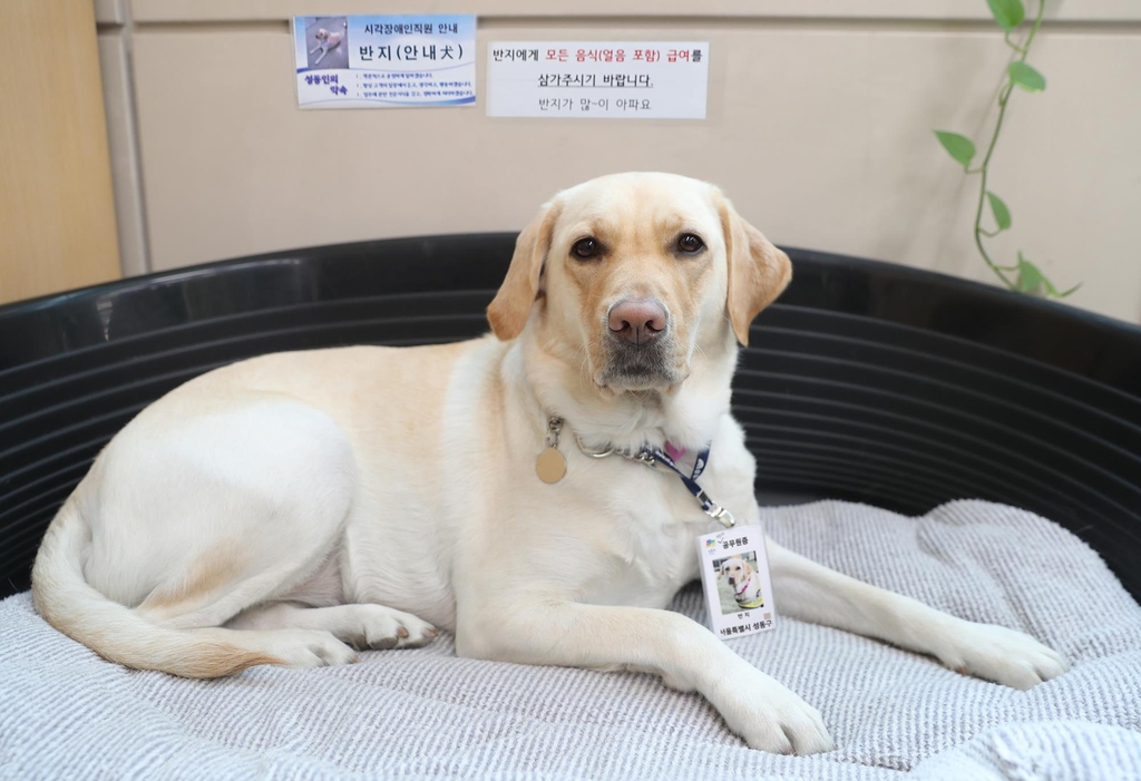 반지는 지난 2월부터 이 구청에서 근무하는 선천성 시각장애인 김새미 주무관과 함께 매일같이 출퇴근을 포함한 일상을 함께 하고 있다.
