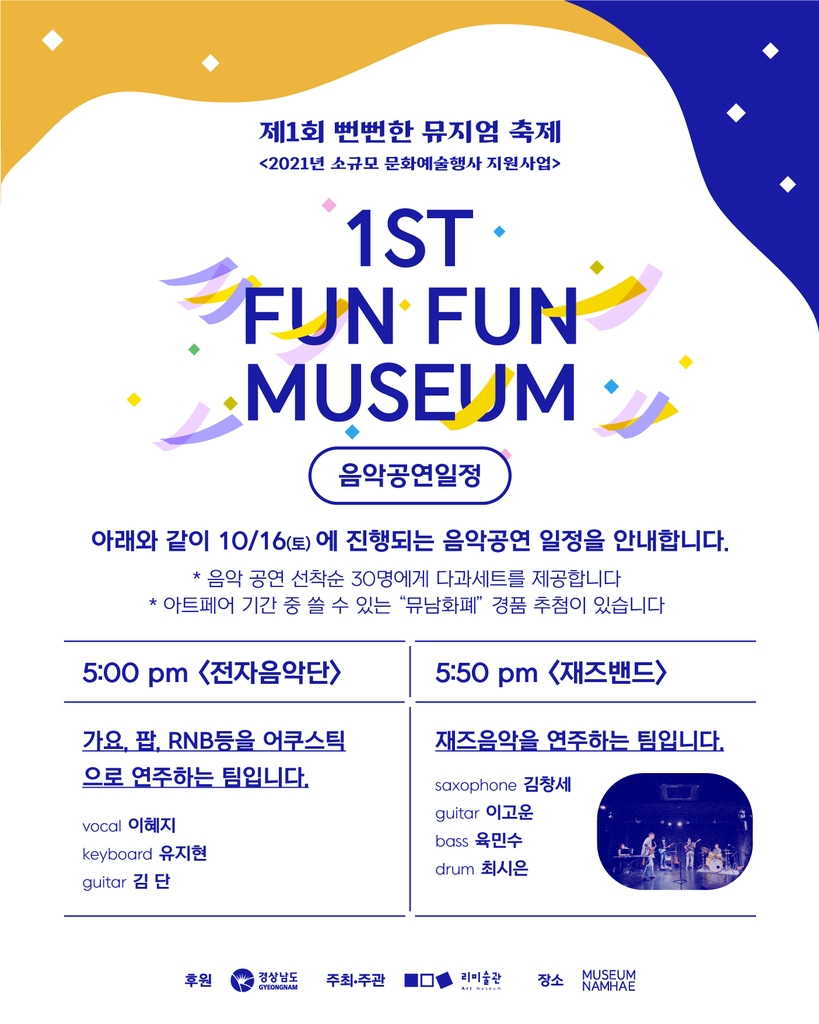 뻔뻔한 뮤지엄축제는 경남도에서 지원하는 '2021년 소규모 문화예술행사 지원사업'으로 운영된다.