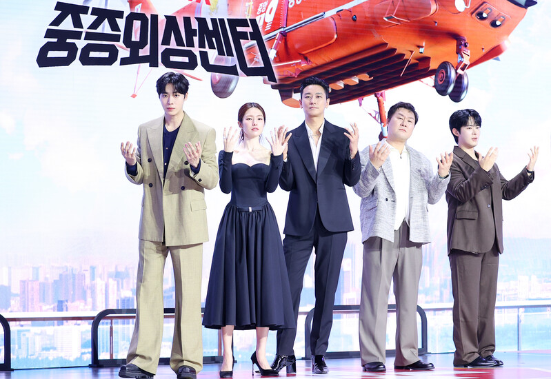 ▲ Cast members of Netflix's upcoming Korean original series "The Trauma Code: Heroes on Call" pose for photos at a press event in Seoul on Jan. 21, 2025. (Yonhap)