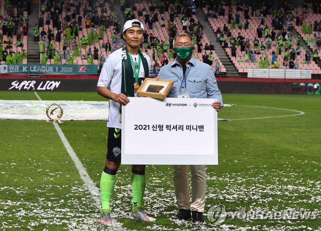 | ▲ 정의선 회장에게 감사패 받는 이동국 [연합뉴스 자료사진] |
