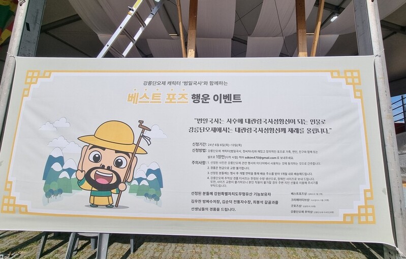 베스트 포즈 행운 이벤트는 단오제단에 설치된 포토존 현수막에서 범일국사와 정씨처녀 캐릭터와 함께 재미있고 창의적인 포즈로 사진을 찍어 메일로 전송하는 이벤트다.