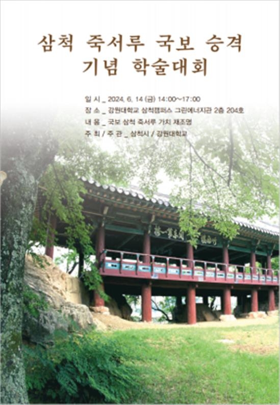 학술대회는 삼척시가 주최하고 강원대가 주관하며, 죽서루의 국보 승격 가치를 재조명하고 활용방안을 모색한다.