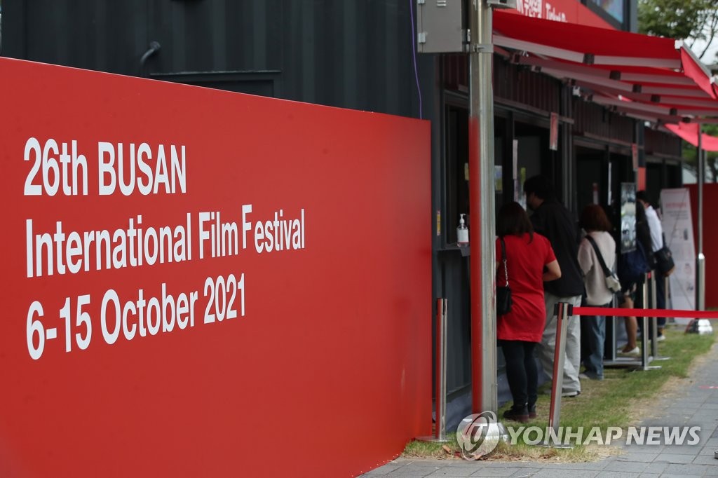 | ▲ 부산국제영화제 티켓 발권 (부산=연합뉴스) 강민지 기자 = 제26회 부산국제영화제가 진행 중인 8일 오후 부산 해운대구 영화의전당 앞에서 티켓부스에서 관객들이 영화표를 구매하고 있다. 2021.10.8 mjkang@yna.co.kr |