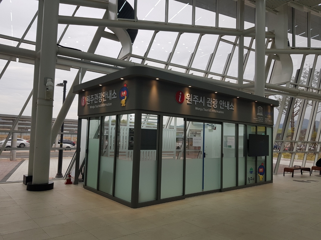 무실동으로 이전한 원주역 관광안내소는 25㎡ 규모로, 오전 9시부터 오후 6시까지 연중무휴 운영되며 관광안내사 2명이 순환 근무한다.