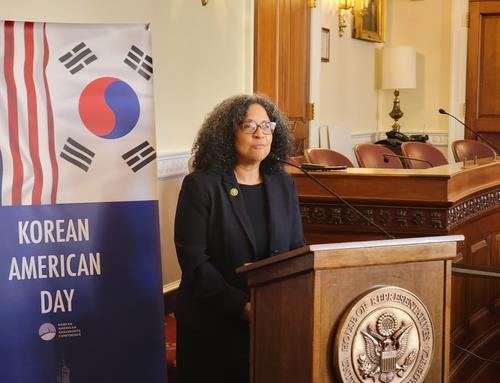 ▲ This photo, taken on Jan. 11, 2024, shows Rep. Marilyn Strickland (D-WA) speaking during an event celebrating Korean American Day in Washington. (Yonhap)