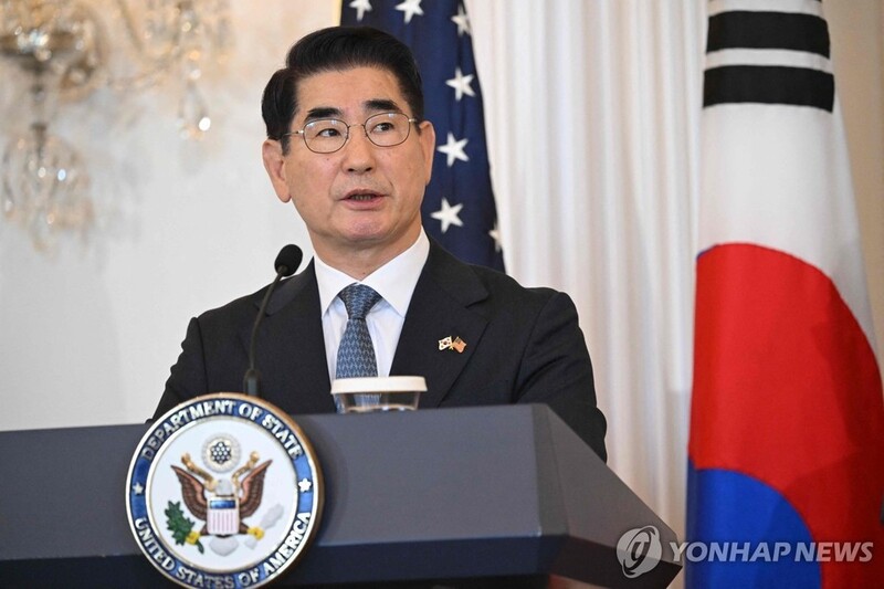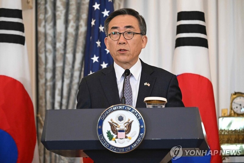 ▲ South Korean Foreign Minister Cho Tae-yul speaks during a press conference at the State Department in Washington on Oct. 31, 2024, in this photo released by AFP. (Yonhap)