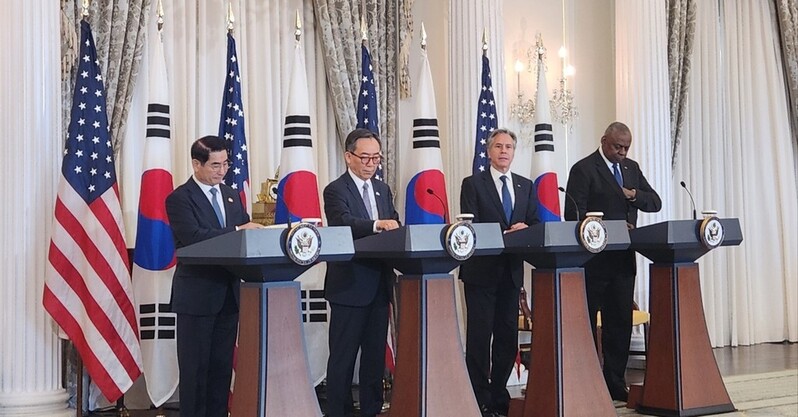 Blinken made the remarks during a press conference after he, Defense Secretary Lloyd Austin and South Korean Foreign Minister Cho Tae-yul and Defense Minister Kim Yong-hyun held their "two-plus-two" meeting at the State Department in Washington.