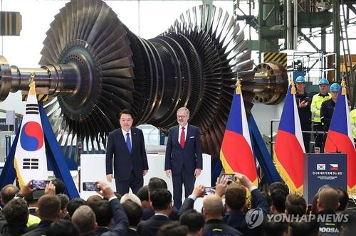 ▲ In this file photo, President Yoon Suk Yeol (L) and Czech Prime Minister Petr Fiala attend a signing ceremony for agreements on nuclear energy industry cooperation at Doosan Skoda Power, a nuclear energy contractor in Plzen, an industrial city about 90 kilometers west of Prague, on Sept. 20, 2024. (Yonhap)