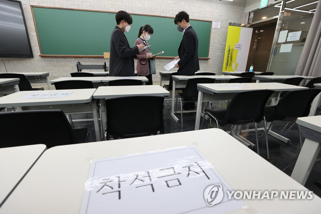 | ▲ Health officials inspect a private education institute in western Seoul on April 15, 2021, to check whether it abided by antivirus rules against COVID-19. (Yonhap) |