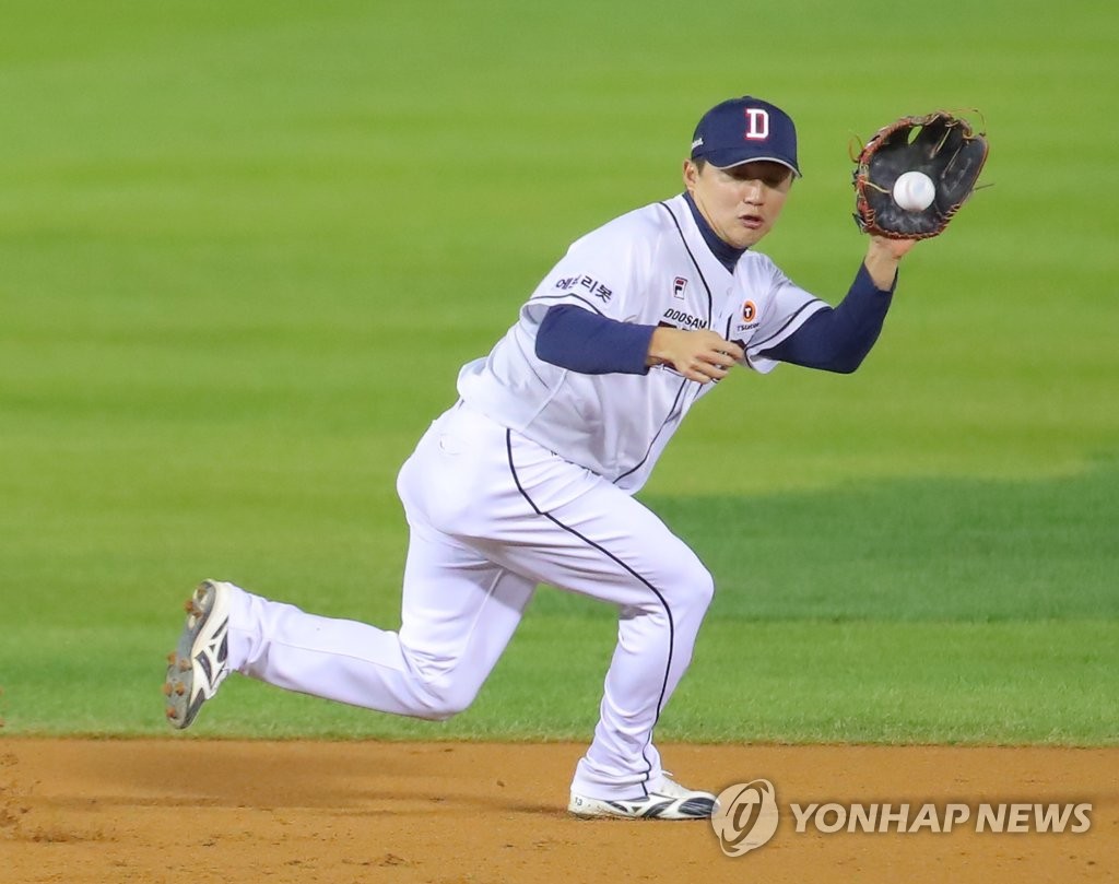 He has taken over from veteran Kim Jae-ho as the everyday shortstop, where he made just one error over 374 1/3 innings in the regular season.