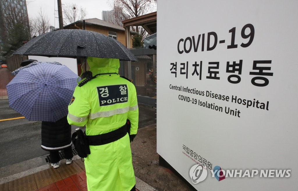 | ▲ A police officer stands next to the gate of the National Medical Center in central Seoul on March 1, 2021. (Yonhap) |