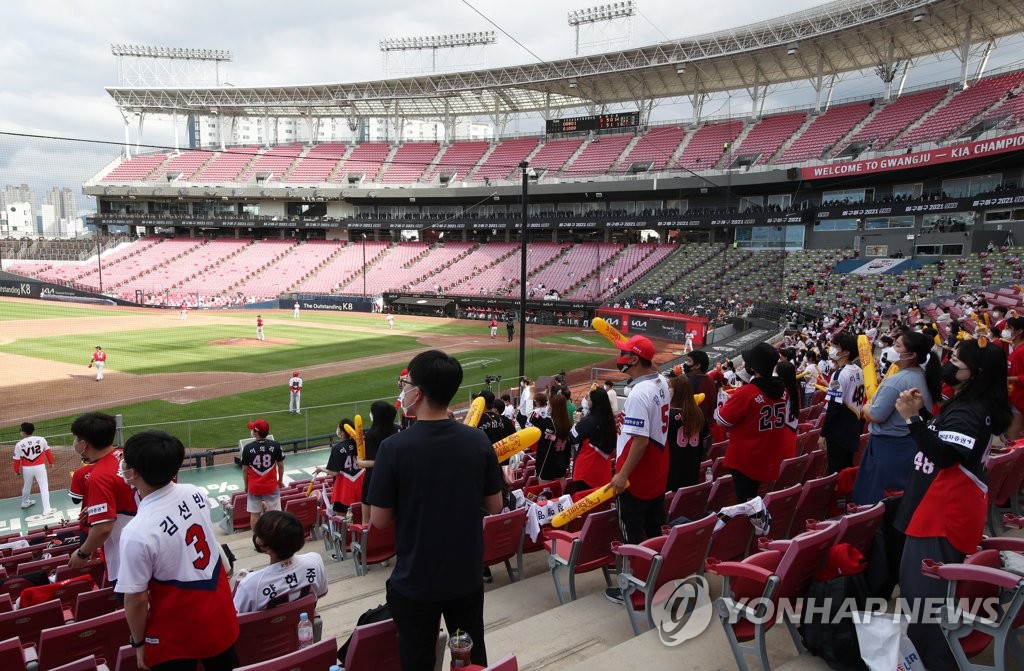 | ▲ Spectators watch a baseball game between the SSG Landers and the Kia Tigers under eased social distancing rules at Gwangju-Kia Champions Field in the southwestern city of Gwangju, 329 kilometers south of Seoul, on June 16, 2021. The stadium increased its seating capacity to 50 percent from the previous 30 percent on June 14 due to the eased rules. (Yonhap) |