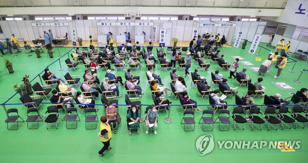 | ▲ Vaccinated people are monitored for adverse symptoms after receiving jabs against COVID-19 at a make shift vaccination center in northern Seoul on June 16, 2021. (Yonhap) |