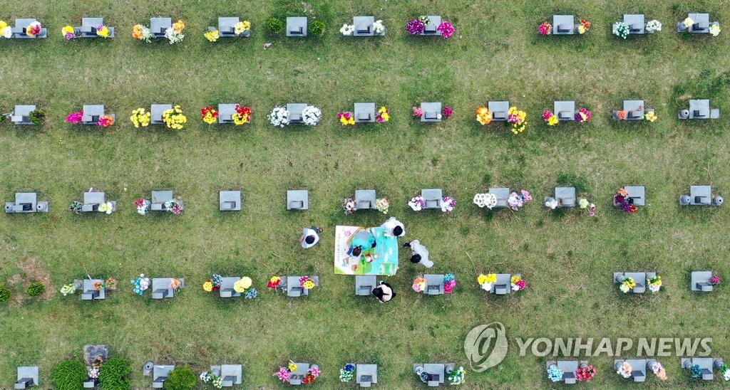 | ▲ People pay tribute to their ancestors at a cemetery in Gwangju, 329 kilometers south of Seoul, on the Korean harvest holiday, Chuseok, on Sept. 21, 2021. (Yonhap) |