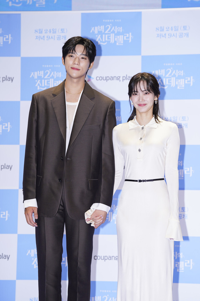 This photo, provided by Coupang Play on Aug. 22, 2024, shows South Korean actress Shin Hyun-bin and actor Moon Sang-min, who star in the original series by Coupang Play "Cinderella at 2am." The 10-episode series will be released on Aug. 24. (PHOTO NOT FOR SALE) (Yonhap)