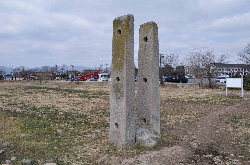 | ▲ 당간지주와 당간 모습 [문화재청 제공. 재판매 및 DB 금지] |