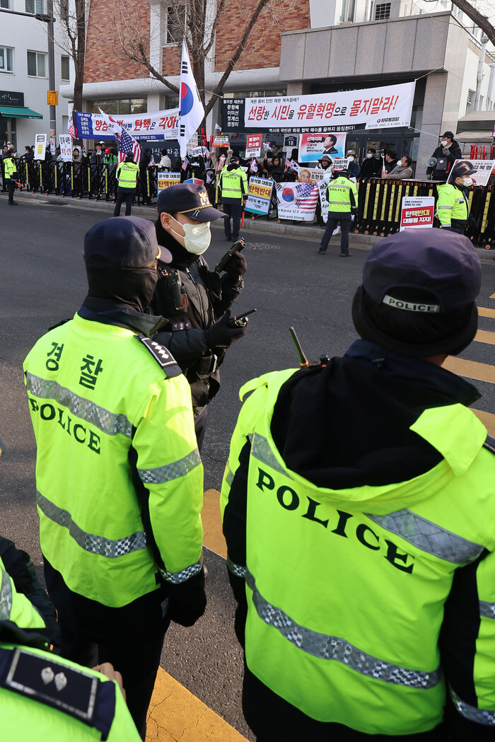 Supporters of impeached President Yoon Suk Yeol stage a rally to call for Yoon's reinstatement near the Constitutional Court in Seoul on March 13, 2025, the 16th day since the court's final hearing on Yoon's impeachment trial. The court has yet to set a date for handing down a decision on whether to remove him from office or reinstate him over his brief imposition of martial law in early December, although it has typically taken the court some two weeks after the final hearing to do so in the past. (Yonhap)