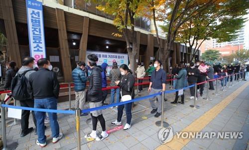 | ▲ People stand in line to receive coronavirus tests at a screening clinic in Seoul's Songpa Ward on Nov. 4, 2021. South Korea's new coronavirus cases stayed above 2,400 for the second consecutive day as the country relaxed its virus restrictions nationwide in line with its "living with COVID-19" scheme. (Yonhap) |
