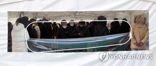 | ▲ People line up to get tested for COVID-19 at a makeshift clinic in Seoul on Dec. 28, 2021. (Yonhap) |