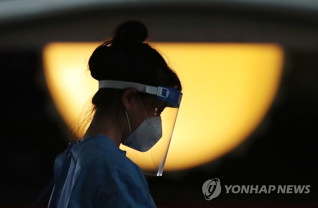 | ▲ A medical worker at a makeshift clinic in central Seoul waits for citizens on July 15, 2021. (Yonhap) |
