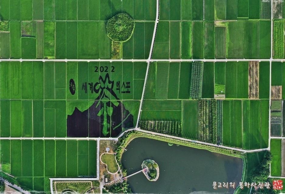 동정호 앞 3.6㏊의 황금들판에는 유색벼로 대형 글자 '세계차엑스포'를 새긴 들녘아트를 조성하고 주변을 허수아비를 장식해 2022년 하동세계차엑스포 성공을 기원한다.