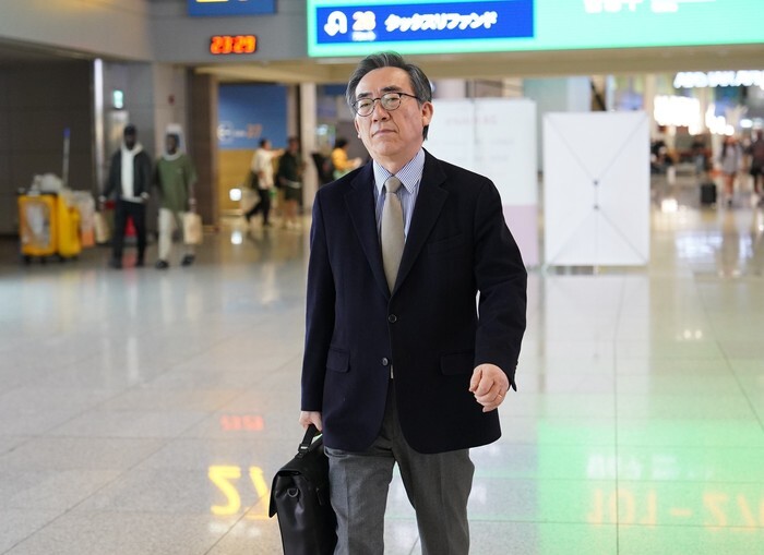 South Korean Foreign Minister Cho Tae-yul arrives at Incheon airport, west of Seoul, on April 2, 2024, before his departure for Brussels to attend a meeting of North Atlantic Treaty Organization (NATO) foreign ministers, in this photo released by the foreign ministry. (PHOTO NOT FOR SALE) (Yonhap)