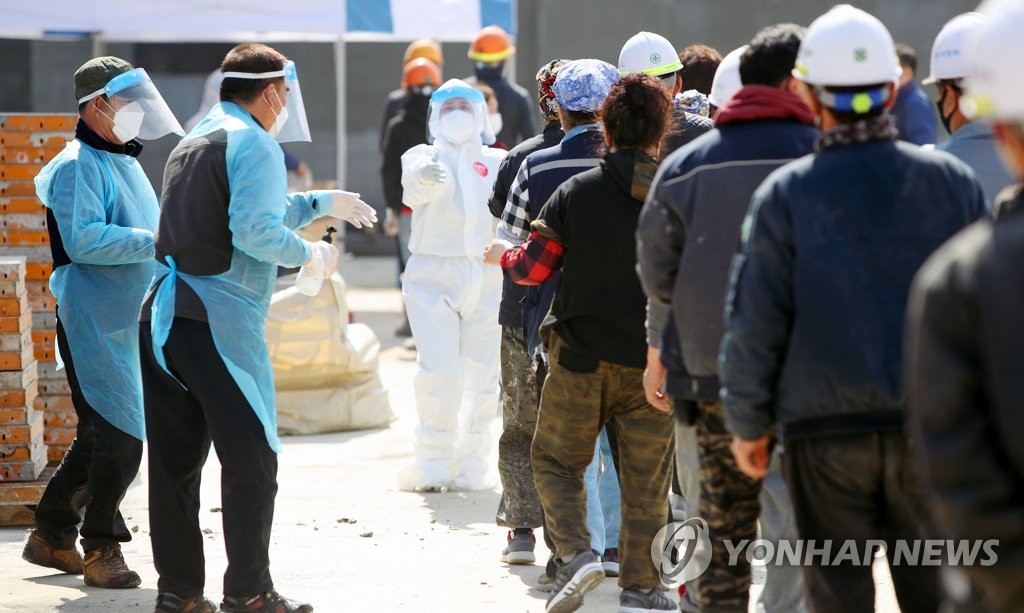 | ▲ People line up to be tested for COVID-19 at a temporary testing station installed at a construction site in Gyeongsan, 331 kilometers south of Seoul, on March 11, 2021. (Yonhap) |