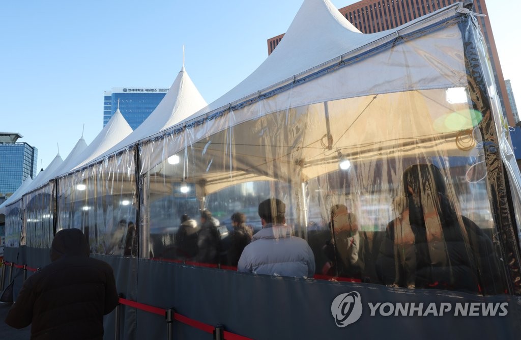 | ▲ This photo, taken Jan. 14, 2021, shows people waiting in line to take COVID-19 tests at a testing site near Seoul Station in Seoul. (Yonhap) |