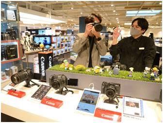 | ▲ 위드 코로나 품목 매출 상승 롯데백화점 부산본점 6층 카메라 전문 매장에서 남성 고객이 카메라 제품을 살펴보고 있다. [롯데백화점 제공] |