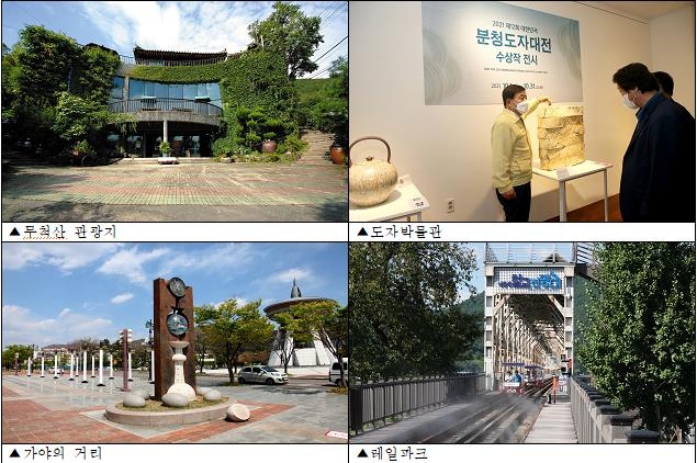 김해시는 국내 최대 하천형 습지를 배경으로 생물 다양성이 풍부한 화포천습지생태공원, 낙동강 강바람을 맞으며 왕복 3㎞ 철도를 달리는 낙동강레일파크, 우리나라 최초 분청도자 전문전시관인 분청도자박물관, 생생하게 재현한 가야왕궁·익스트림 체험시설이 있는 가야테마파크를 소개했다.