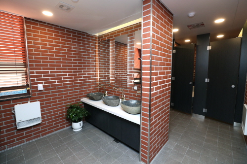 구는 화장실 내 낡은 기계설비와 배관을 교체하고, 간접조명을 설치하는 한편 세면대·칸막이·타일·양변기를 교체하는 등 동별 특성을 고려한 맞춤형 인테리어를 통해 '힐링 공간'으로 업그레이드했다.