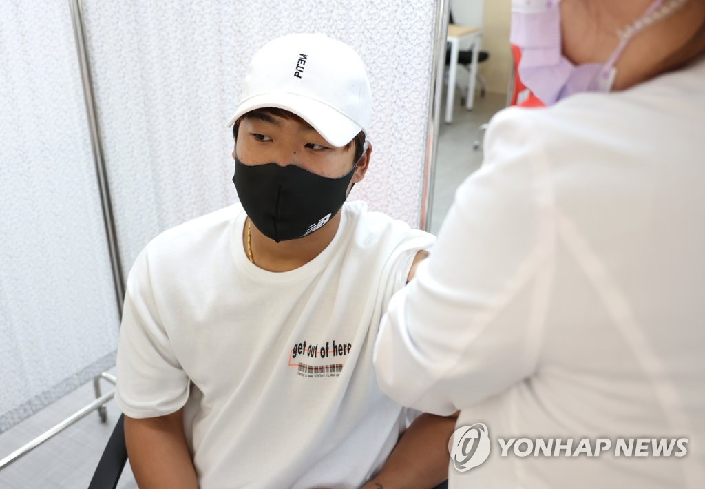 | ▲ This photo taken on June 20, 2021, and provided by the Ministry of Health and Welfare, shows baseball player Kang Baek-ho receiving a COVID-19 vaccine at the National Medical Center in Seoul ahead of the Tokyo Olympic Games that begins on July 23. (PHOTO NOT FOR SALE) (Yonhap) |