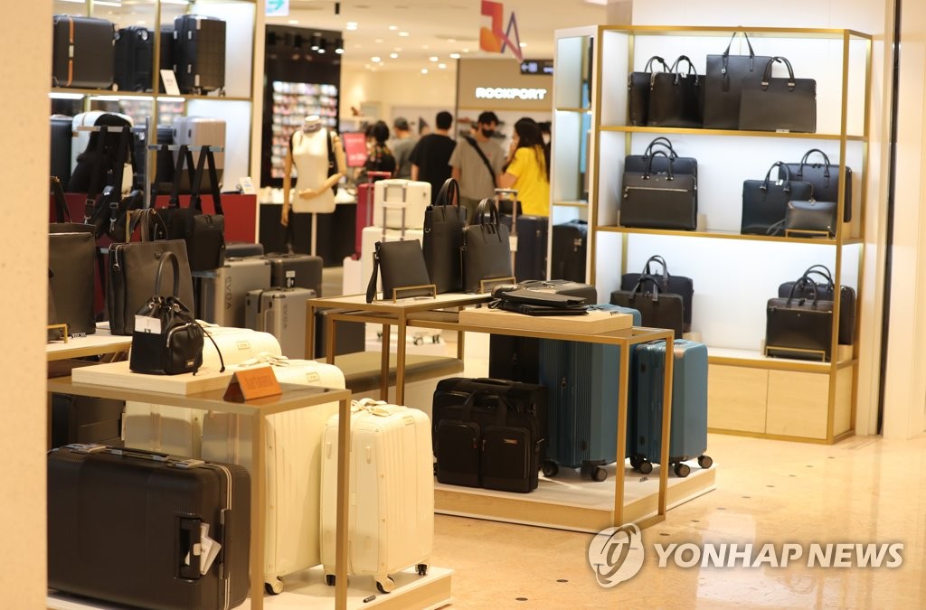 | ▲ This photo taken on June 20, 2021, shows a store selling suitcases and other bags at Lotte Department Store in central Seoul as the nationwide vaccination drive raises hopes of overseas travel starting later this year. (Yonhap) |