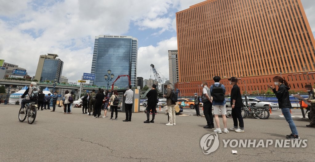 | ▲ Citizens wait in a line to receive COVID-19 tests at a makeshift clinic in central Seoul on May 25, 2021. (Yonhap) |