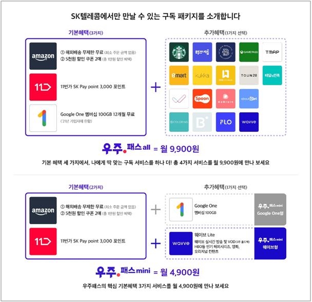 우주패스 미니는 첫 달 100원, 우주패스 올은 첫달 1천원 프로모션도 마련한다.