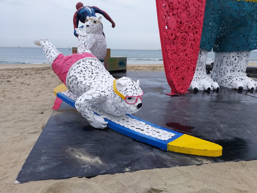 지구 온난화로 고통받는 북극곰과 송정을 대표하는 서핑을 접목, 총 7점의 정크아트가 전시된다.